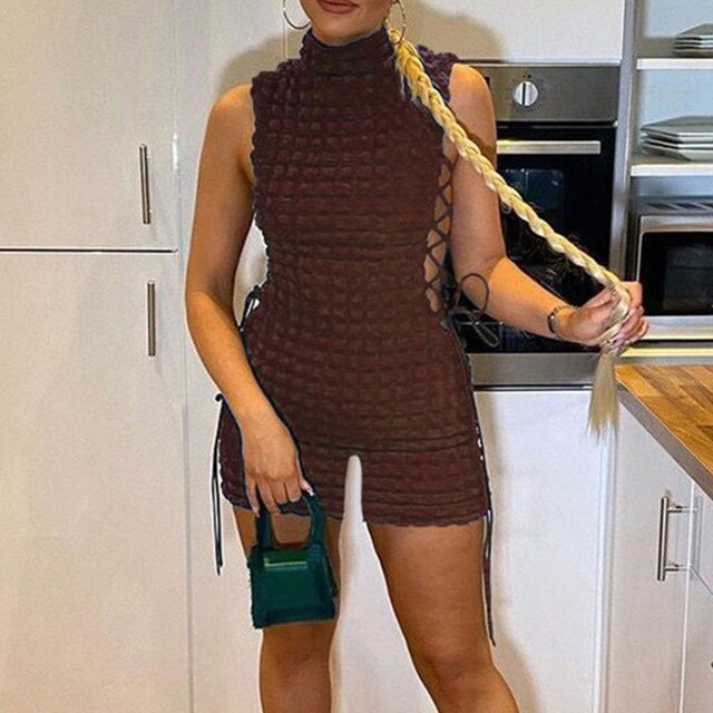Look stunning in the Designer Dresses High Neck Lace Up Mini Dress this summer. Featuring a high neck, solid sleeved design and lace up detail, this dress is so unique that you'll undoubtedly turn heads. It's perfect for an office look or special occasion with its form-fitting cut accentuating your shape. The dress is made from superior quality fabric that ensures you stay feeling comfortable all day long. With the designer touches you not only look elegant but also guarantee your outfit makes an impact wherever you go. Don't miss out on looking amazing! Get your hands on this versatile ladies mini dress today and show off your unique style.