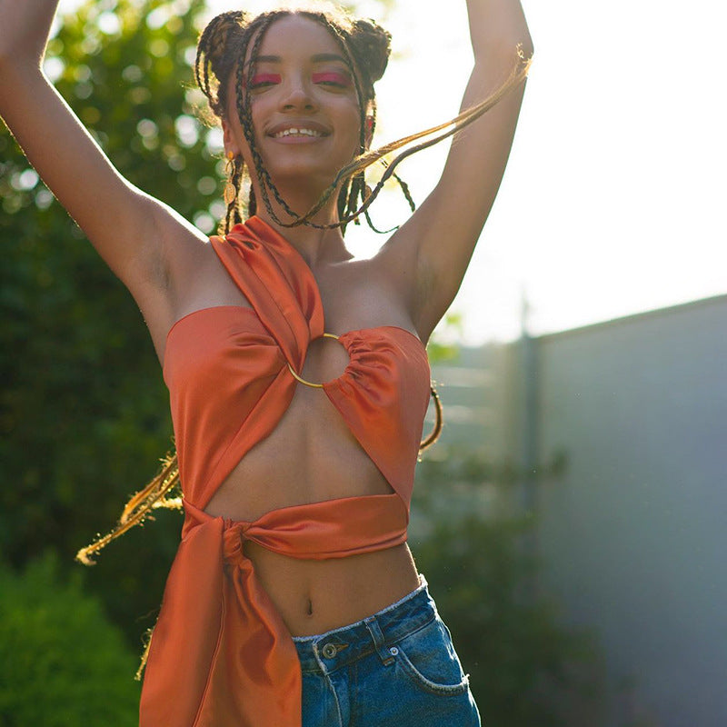 Solid Color Sexy Self-cultivation Knotted Straps And More Tops Women