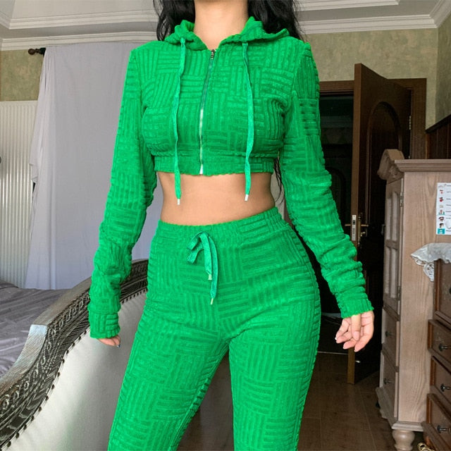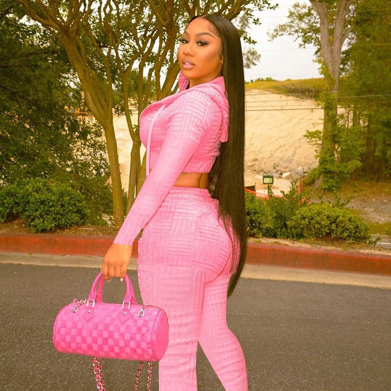 Looking for a stylish and comfortable tracksuit set that you can wear both to the gym and on your days off? Look no further than this two-piece Waffle Tracksuit Set from our latest collection. Made from a soft and cozy waffle fabric, this tracksuit is perfect for lounging around the house or getting in a good workout at the gym. The hooded track top features a drawstring waist for a adjustable and comfortable fit, while the jogger pants have a tapered leg design for a flattering look. Whether you're hitting the gym or just running errands, this tracksuit set is sure to keep you looking and feeling your best.