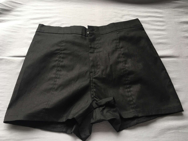 Women Solid Shorts Criss Cross Bandage REGULAR High Waist Black Short